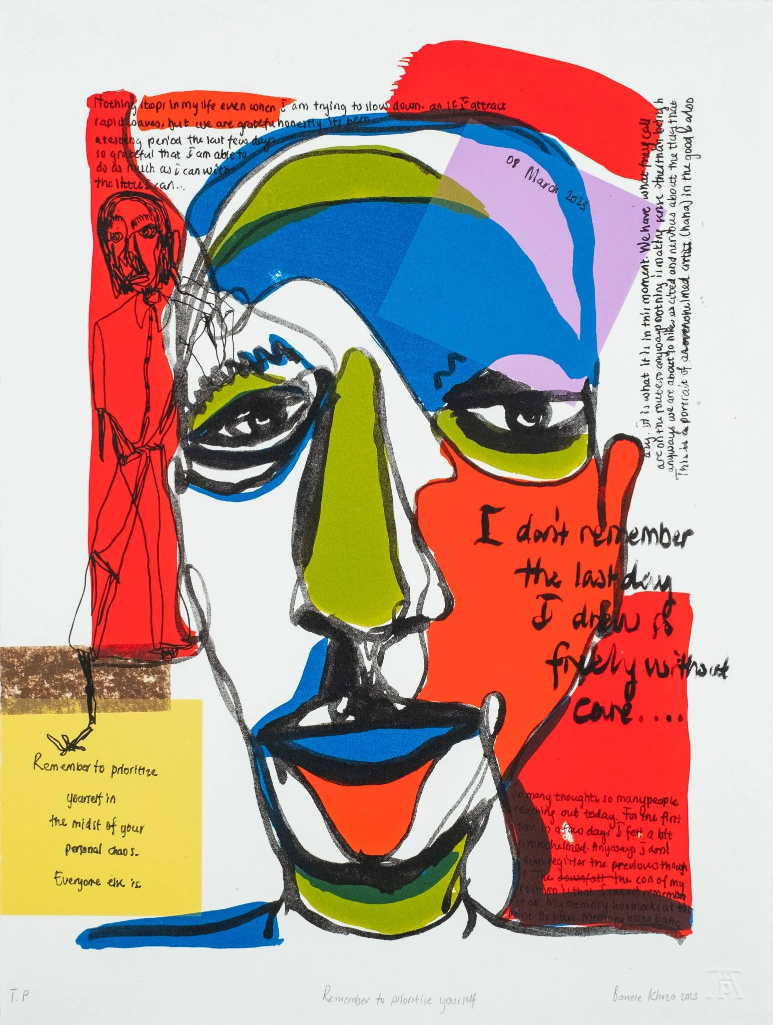 In the early autumn of 2023 Khoza retreated to the gentle hills of Mpumalanga for residency at The Artists’ Press. What was supposed to be a week long stay was doubled as Khoza found himself safe, inspired and guided by his surroundings. The resulting body of work reflects both the natural beauty of the area as well as Khoza’s classic reflective, observational style — a time capsule of two weeks in Mpumalanga.